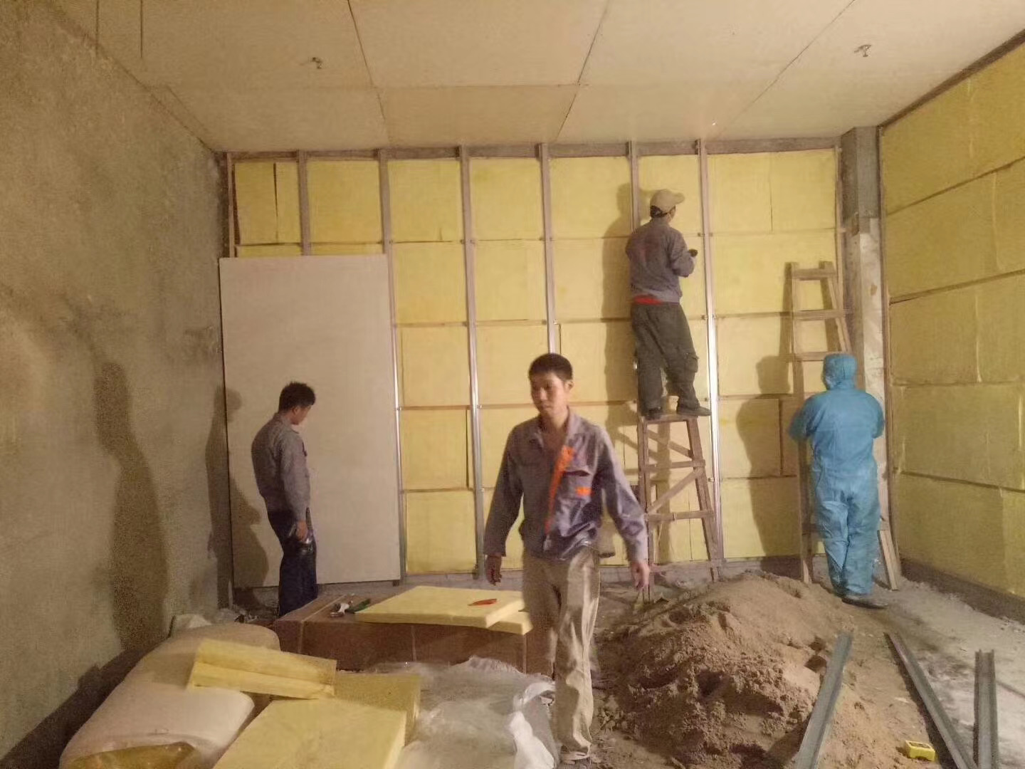 高密度的玻璃棉板也就是隔聲玻璃棉板,聲音不容易穿透,這樣將聲音隔絕在外面,從而達(dá)到很好地達(dá)到隔聲的效果,很多工程都會(huì)用到玻璃棉隔聲板進(jìn)行墻體隔音,這是比較常見的玻璃棉隔聲應(yīng)用。